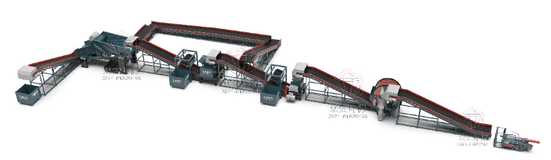 眾安環(huán)保輪胎破碎+造粒生產(chǎn)線主要是對(duì)廢舊輪胎進(jìn)行撕碎、鋼絲分離、粉碎、纖維分離等處置,使廢舊輪胎實(shí)現(xiàn)再生。廢舊輪胎首先經(jīng)過(guò)液壓抽絲機(jī)將胎側(cè)鋼絲抽離,經(jīng)輸送設(shè)備送入輪胎撕碎機(jī)進(jìn)行破碎,可以把輪胎破碎成5公分左右的小塊,然后經(jīng)過(guò)鋼絲分離機(jī)將橡膠塊中的細(xì)鋼絲分離,再經(jīng)振動(dòng)輸送設(shè)備進(jìn)行振動(dòng)篩分,纖維分離機(jī)和磁選機(jī)將纖維和鋼絲從輪胎膠粉里分離出來(lái),篩下物即為成品橡膠顆粒/膠粉。