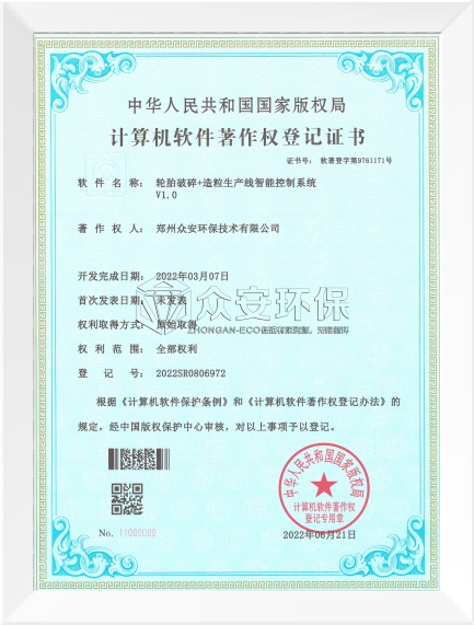 八月捷報(bào)頻傳,眾安環(huán)??蒲谐煽?jī)突出,榮獲《輪胎破碎+造粒生產(chǎn)線智能控制系統(tǒng)V1.0》等多項(xiàng)軟件著作權(quán),高精品控打造優(yōu)良產(chǎn)品,智慧軟件助力高端智能。